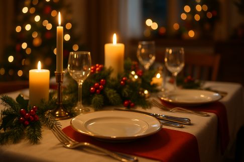 - Vaisselle blanche ou grès artisanal : mixez les services, ajoutez quelques branches de sapin ou de bouleau en centre de table.