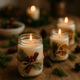 - Placez une ou deux bougies LED ou des photophores sécurisés le long du rebord intérieur. Choisissez des modèles en bois, en verre dépoli ou réalisez-les vous-même avec des pots recyclés et un brin de peinture givrante.