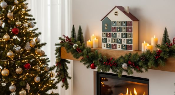 - Adoptez la slow déco : une simple branche suspendue, ornée de chaussettes ou boîtes numérotées, apporte un cachet naturel et authentique.