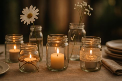 - Photophores sécurisés : Réalisez des photophores avec des pots en verre, quelques stickers étoilés, du papier calque, et une bougie LED pour créer une marche lumineuse.